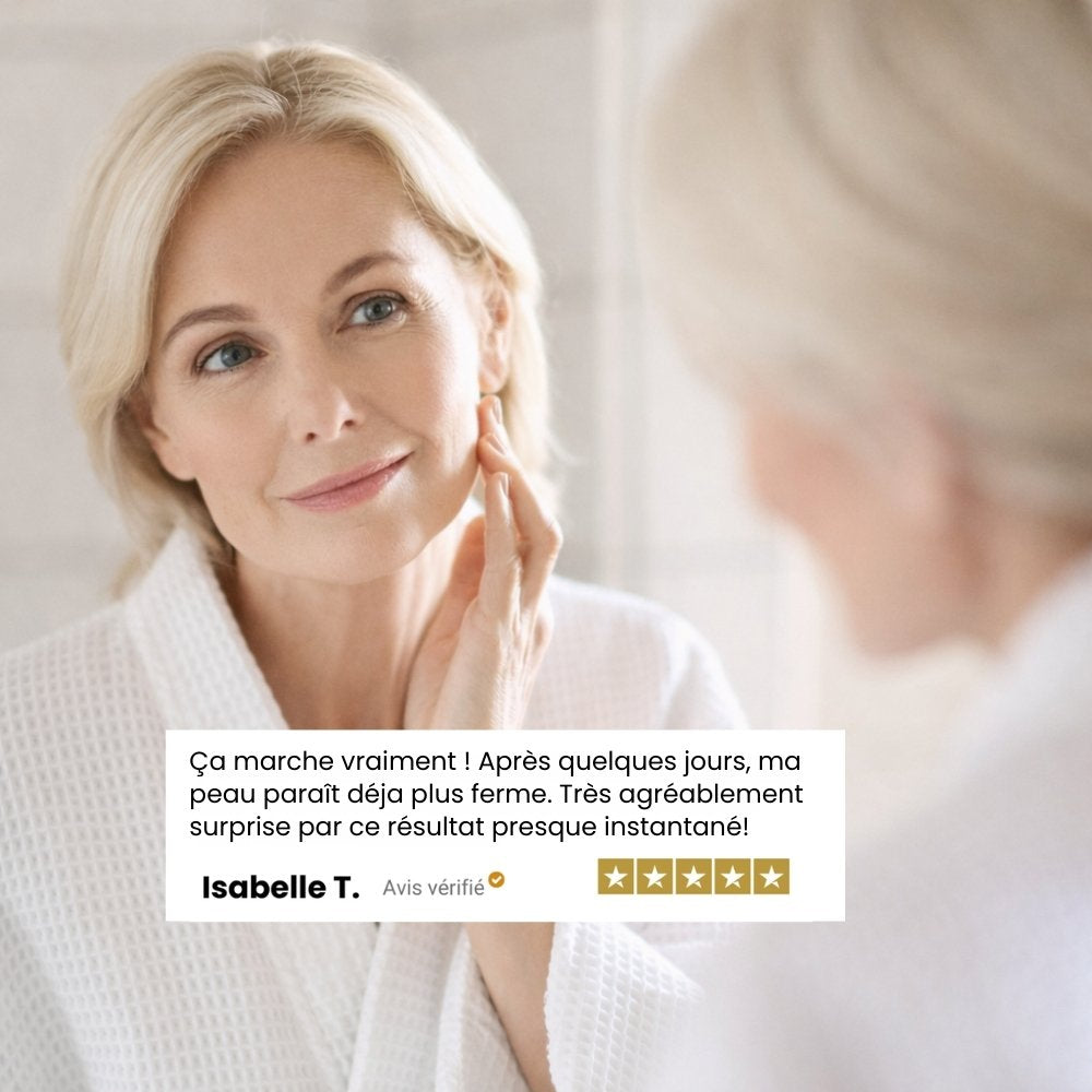 La plupart des clients remarquent un effet lissant immédiat après la première application. L'effet raffermissement apparaît généralement dans les 24 heures. Les ridules s'améliorent sous 48 heures. Les résultats les plus marquants se développent sur 1 à 2 semaines.